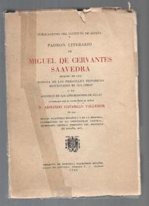 PADRON LITERARIO DE MIGUEL DE CERVANTES SAAVEDRA SEGUIDO DE UNA NOMINA DE LOS PERSONAJES MENCIONADOS EN SUS OBRAS Y UN APENDICE DE LOS APROBADORES DE ELLAS
