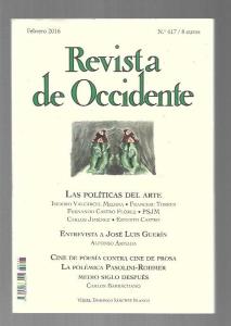 REVISTA DE OCCIDENTE 417: LAS POLITICAS DEL ARTE / ENTREVISTA A JOSE LUIS GUERIN / CINE DE POESIA CONTRA CINE DE PROSA. LA POLEMICA PASOLINI-ROHMER MEDIO SIGLO DESPUES